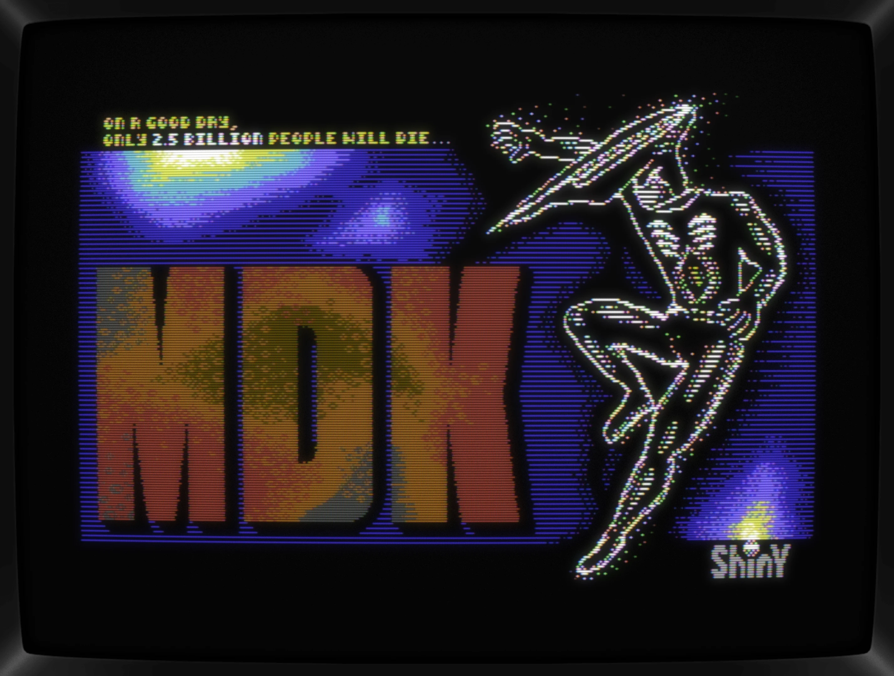 Dipping into other gfx formats than doing PETSCII is something that I am looking forward to and having a compo does help getting motivated. The currently running C64GFX.com Game Loading Screen Compo 2024 made it easy to find a project for practicing. Going for a Hi-Res pic, something not too elaborate was needed and looking over at my shelf full of big box games, MDK came to mind.