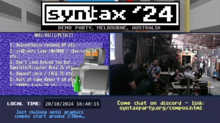 Jazzcat got in touch with me back in July 2024 about a bit for, well, let's not spoil the surprise, but anyway, we've mailed back and forth and of course Syntax 2024 came up too. With the GFX compos being open for remote entries, I planned to submit a PETSCII. I didn't have an idea right away and with the party being a couple of months away, I thought putting it on the back burner would be OK. At the same time, my C64 time slots were fully booked with learning how to code and then to top things off, there are other C64 things happening too that I won't spoil here either, but long story short, I haven't had anything until the week before the compo.