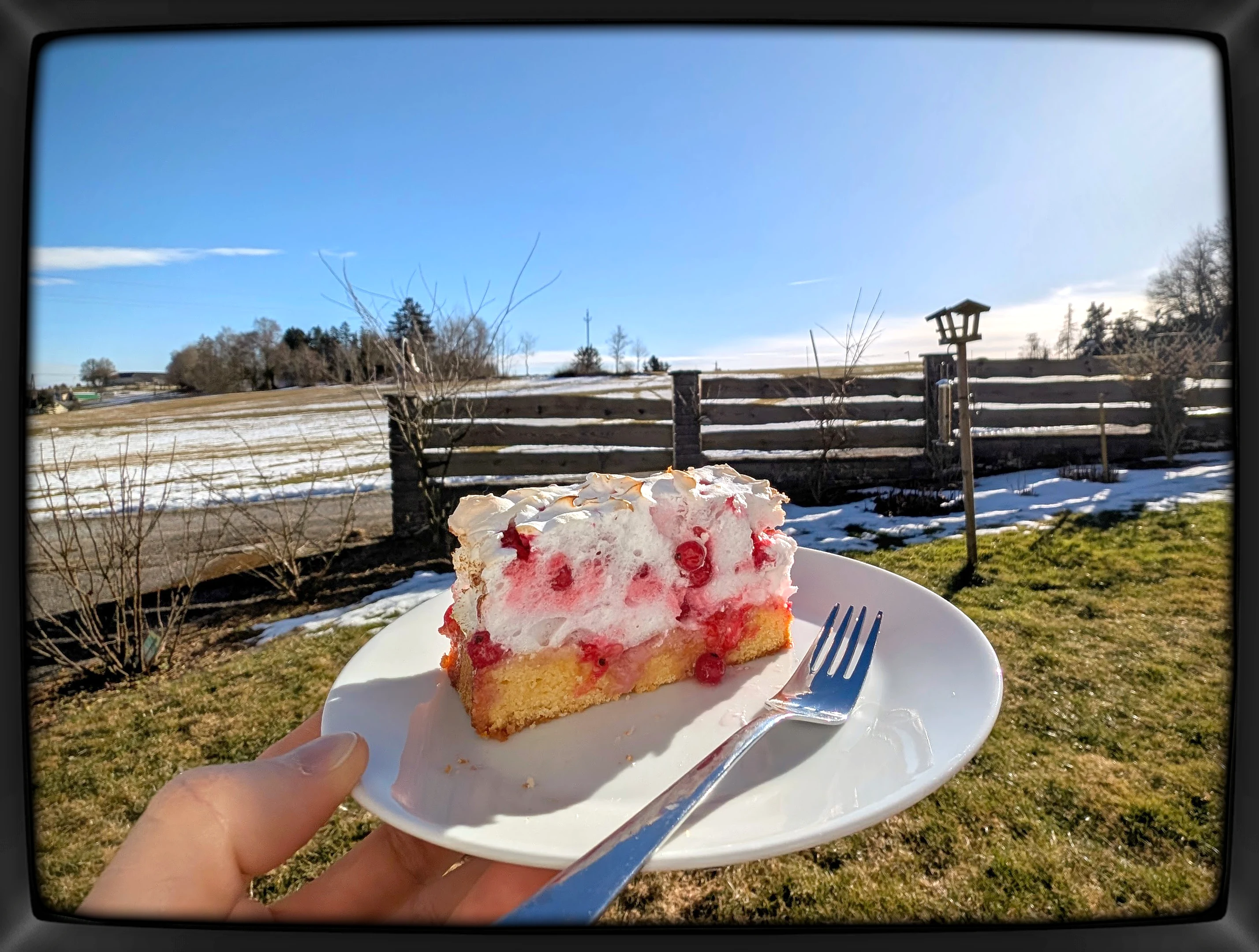 13:25, back again and thus the end of intermission. Refilling my energy levels with a lovely piece of delicious Ribiselschaumschnitte.