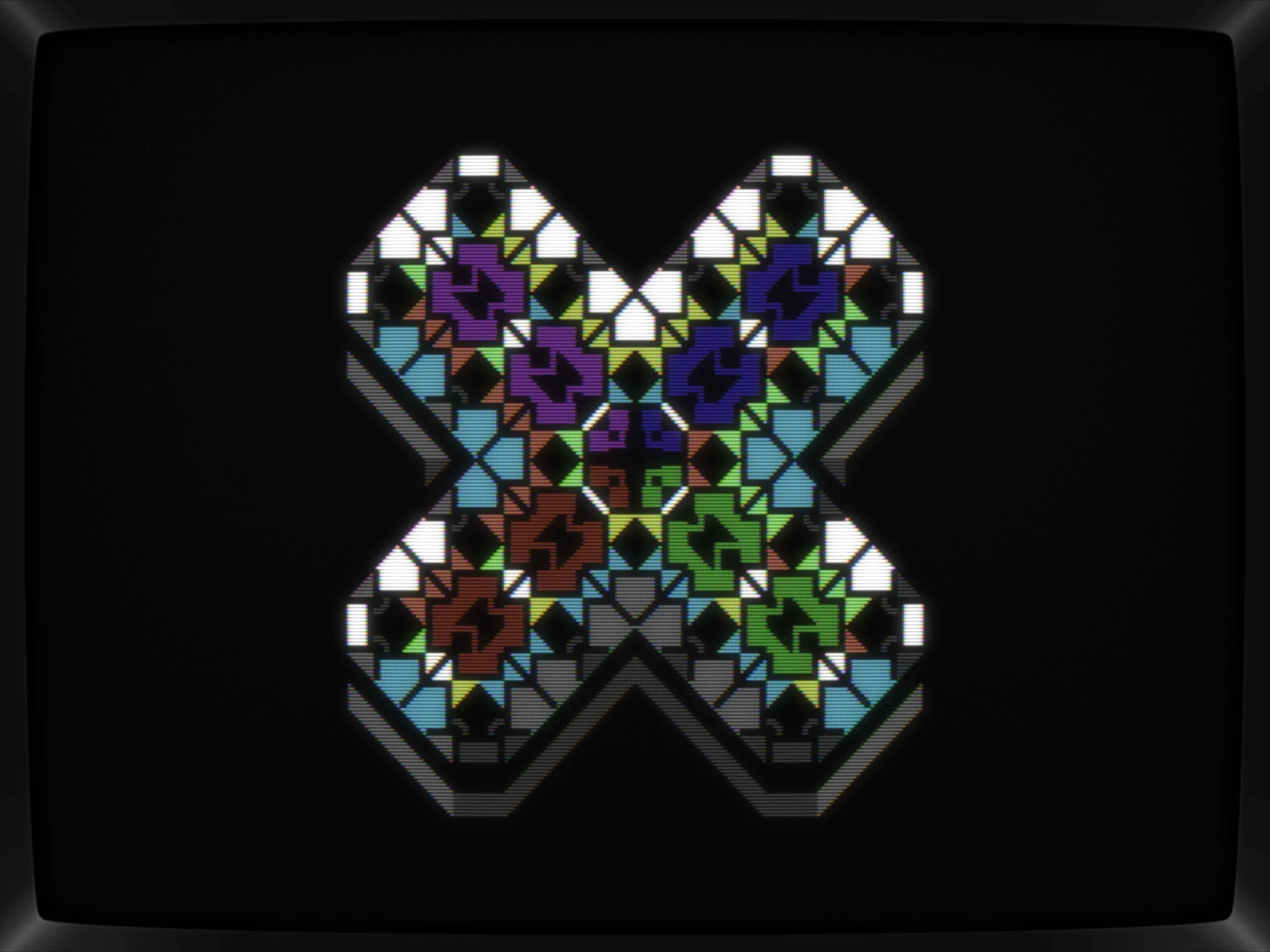 I also did an iteration of it, fooling around with border for the X as well as working on the hardest part, the four chars in the very center.