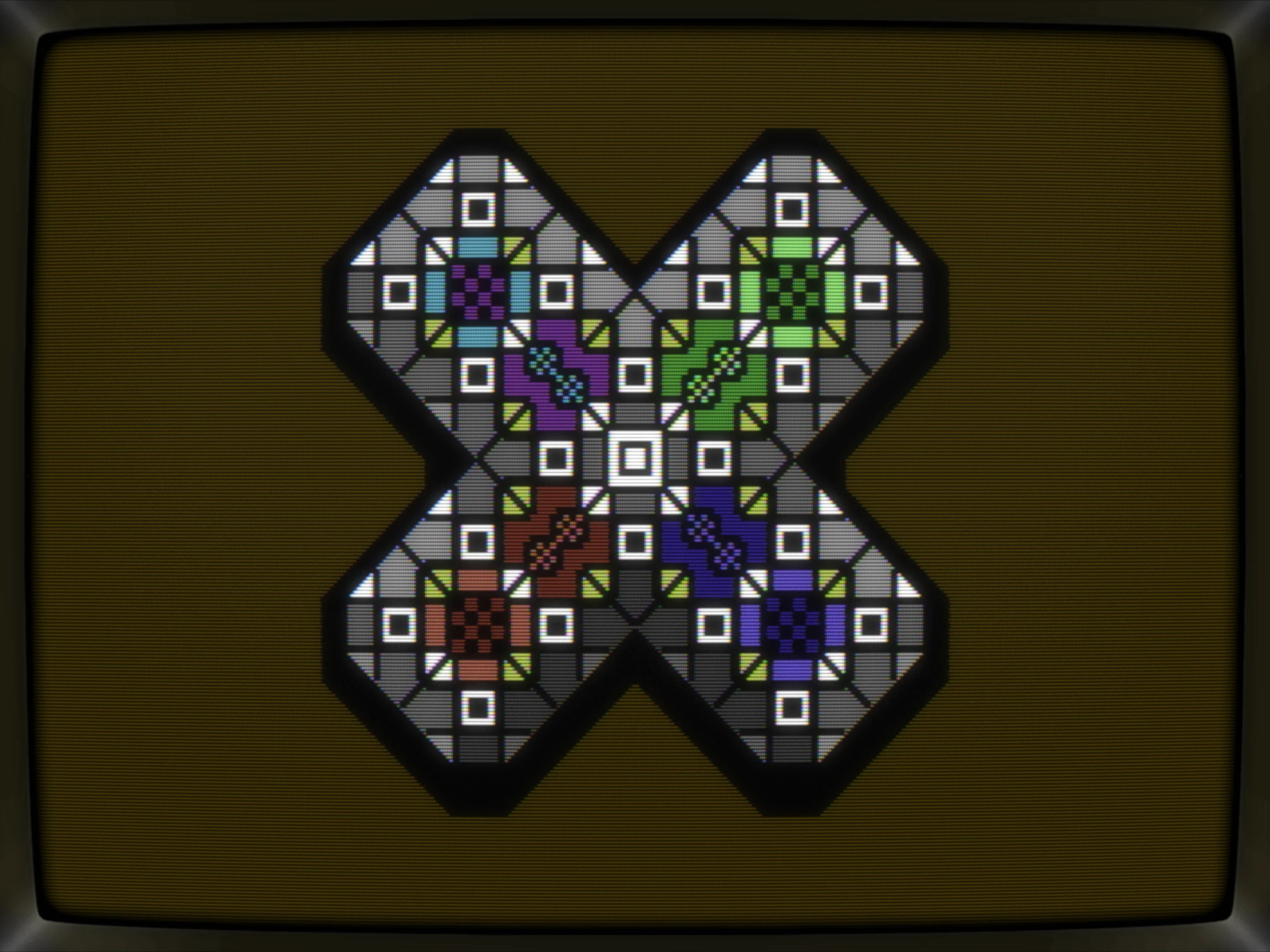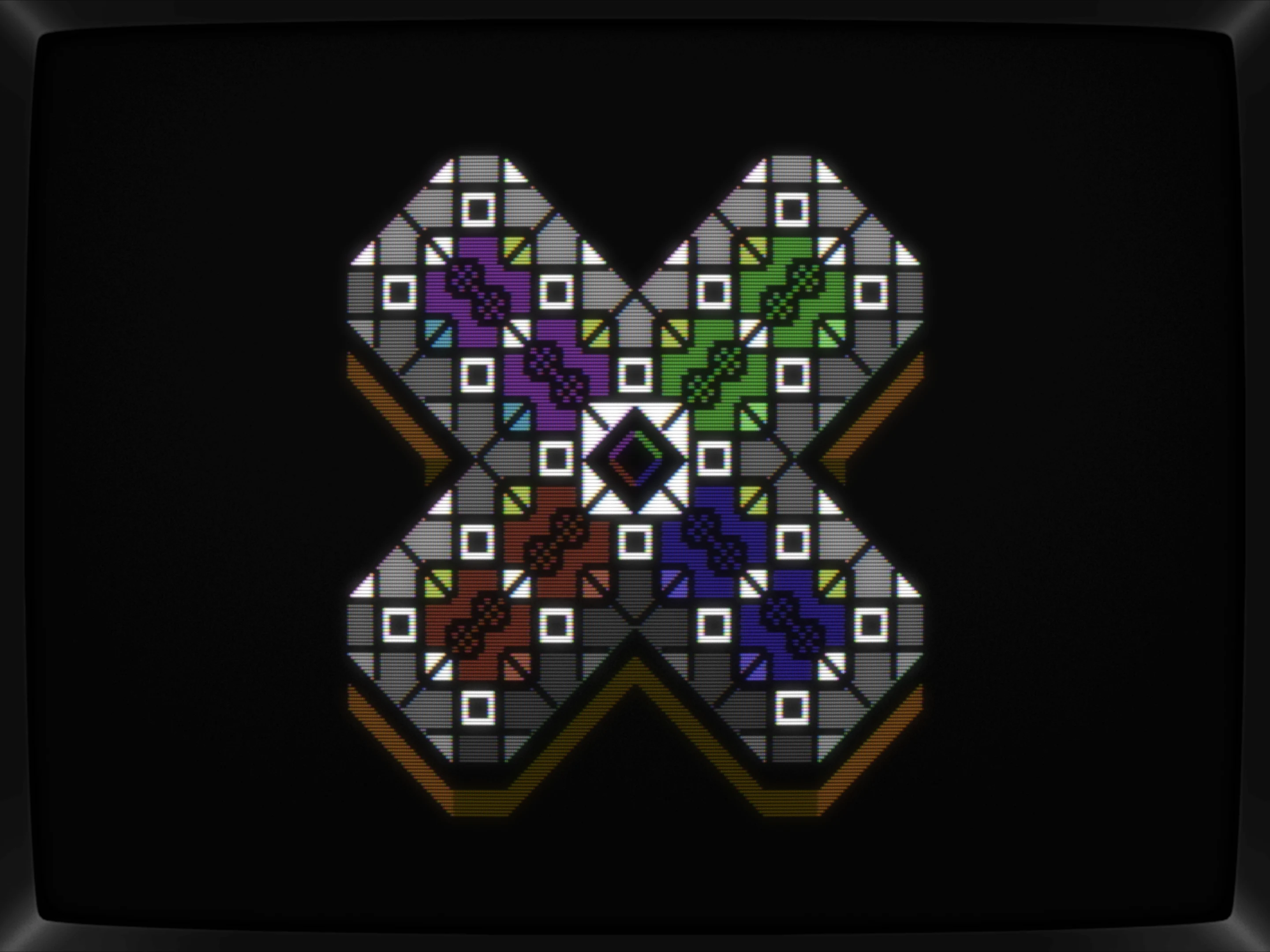 While fighting with myself over the background, the pattern and the center piece got tweaked till it just clicked. Doubling down on the checkerboard with an enlaged "mega char"-like one created a visual path, luring one into starring at the center; it's not head-on like a 3D effect, but it's there and I really like it.